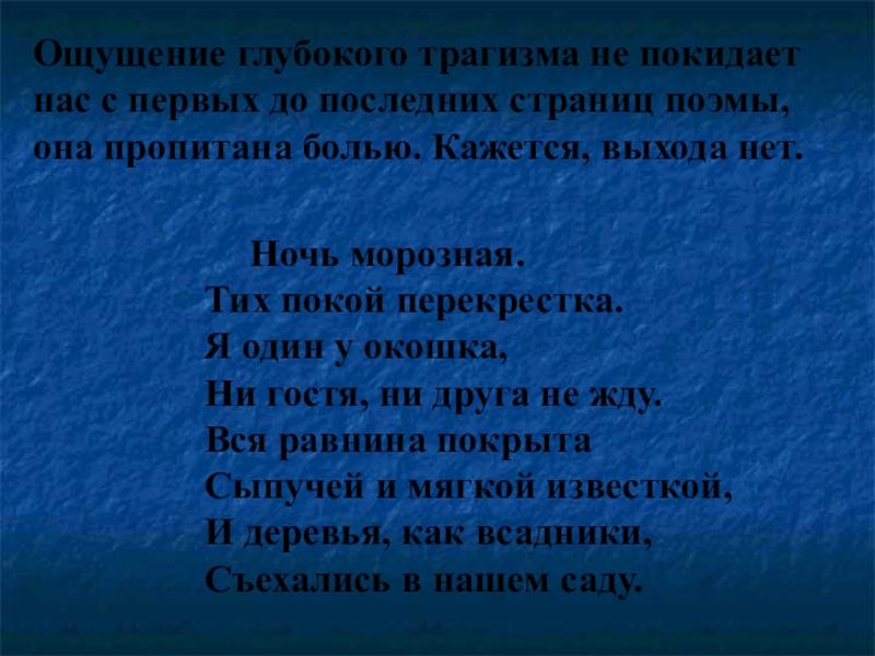 поэмы,она пропитана болью. Кажется, выхода нет.