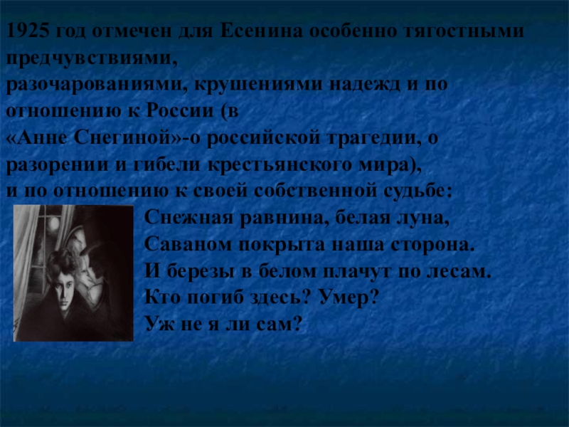 Слайд 31925 год отмечен для Есенина особенно тягостными предчувствиями,