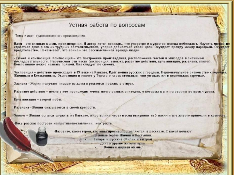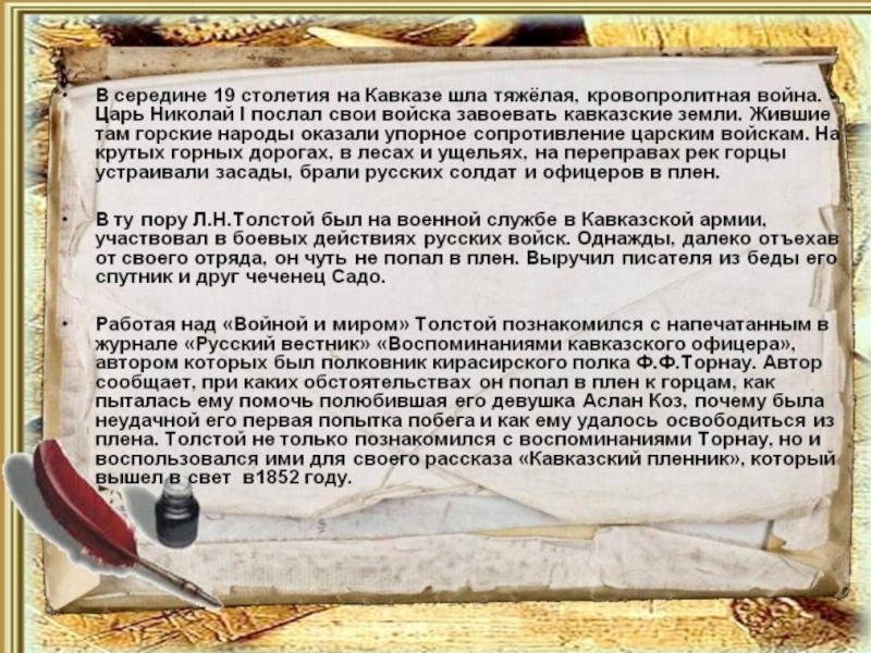 Презентация, доклад по литературе Идея Кавказского пленника Л.Н.Толстого.