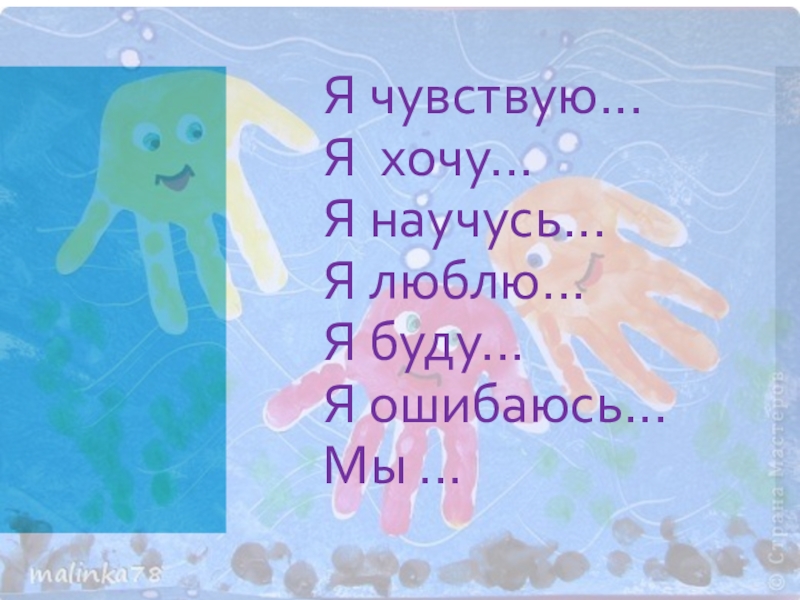 Я чувствую... Я  хочу... Я научусь... Я люблю... Я буду... Я ошибаюсь... Мы ...