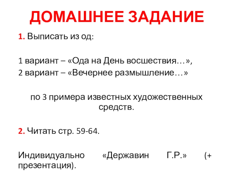 Индивидуально «Державин Г.Р.» (+ презентация).