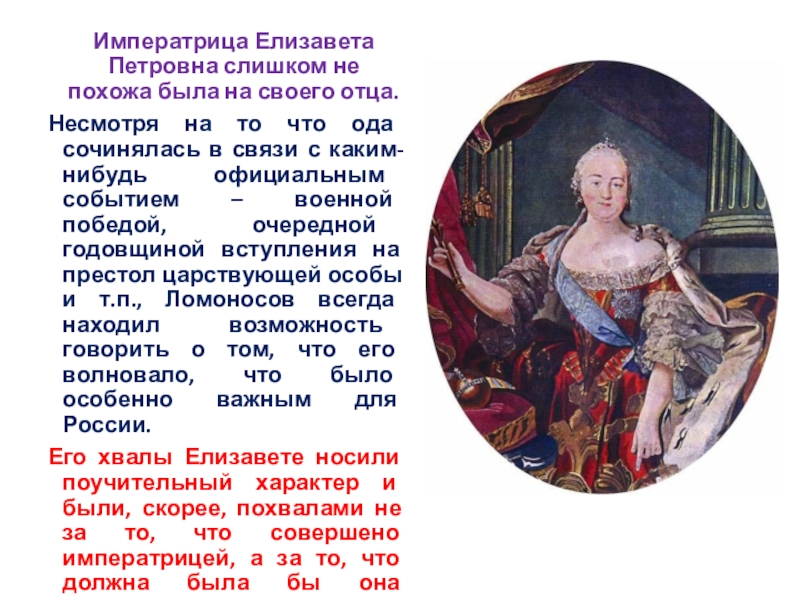 Слайд 15Идеалом Ломоносова был Императрица Елизавета Петровна слишком не похожа была на
