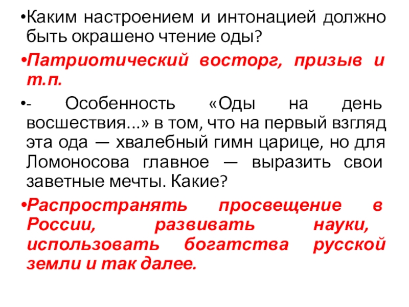 Слайд 17Каким настроением и интонацией должно быть окрашено чтение оды?