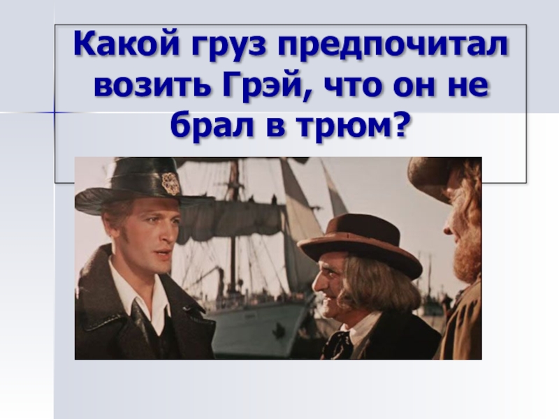 Слайд 11Какой груз предпочитал возить Грэй, что он не брал в трюм?
