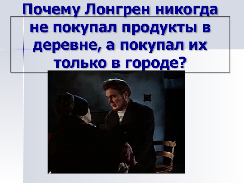 Слайд 3Почему Лонгрен никогда не покупал продукты в деревне, а покупал их