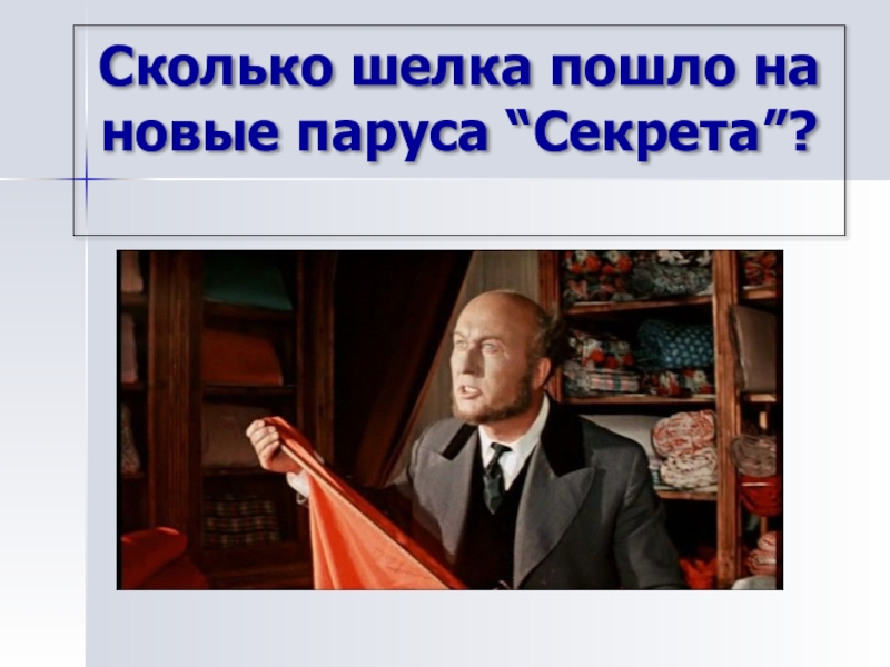 Слайд 10Сколько шелка пошло на новые паруса “Секрета”?