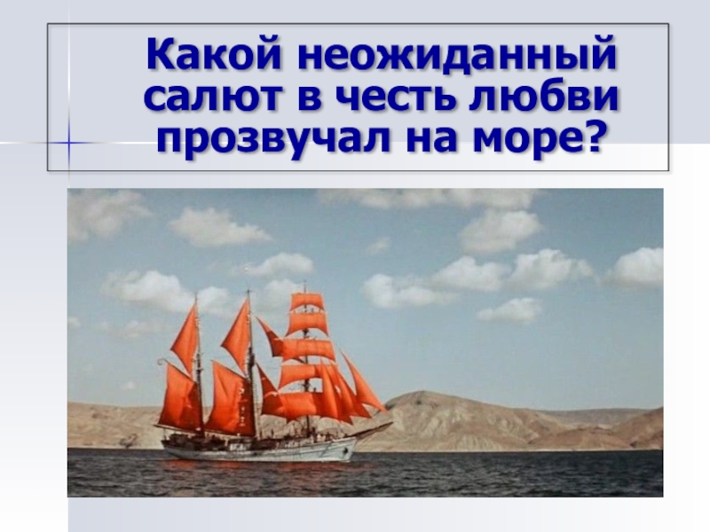 Слайд 12 Какой неожиданный салют в честь любви прозвучал на море?