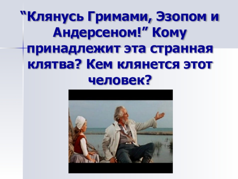 Слайд 6“Клянусь Гримами, Эзопом и Андерсеном!” Кому принадлежит эта странная клятва? Кем