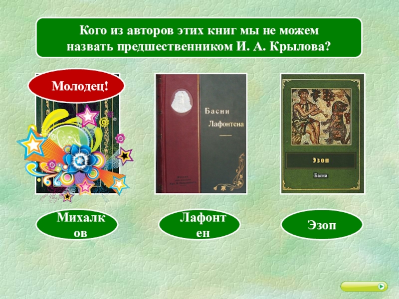 Сюжет басни о Лисице и Винограде встречается у Эзопа, Лафонтена, Крылова.