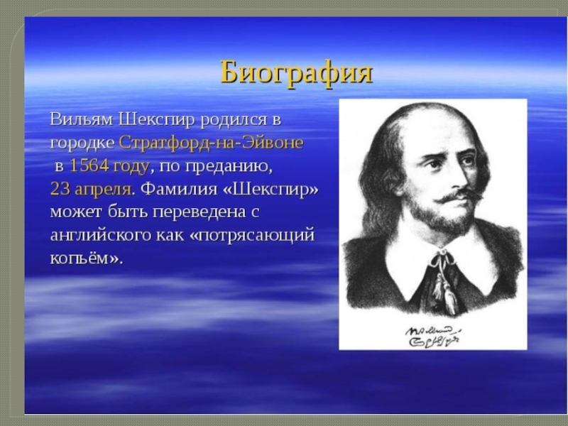 Презентация, доклад по литературе на тему: Биография У.Шекспира