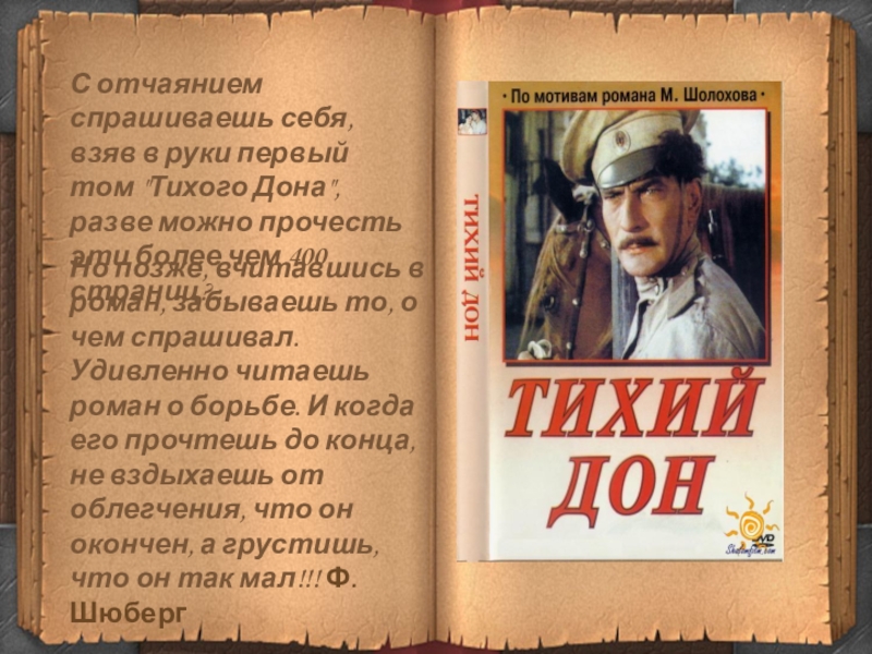Но позже, вчитавшись в роман, забываешь то, о чем спрашивал. Удивленно читаешь роман о борьбе. И когда его прочтешь до конца, не вздыхаешь от облегчения, что он окончен, а грустишь, что он так мал!!! Ф. Шюберг