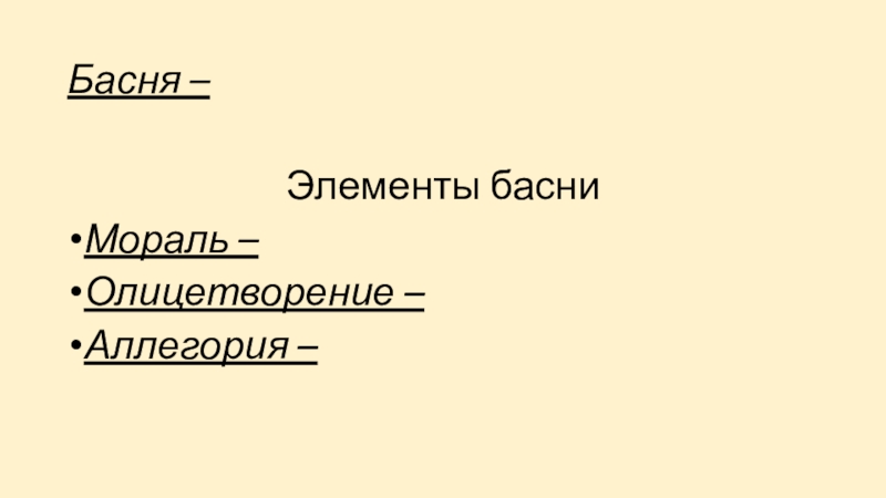 Басня – Элементы басниМораль – Олицетворение – Аллегория –