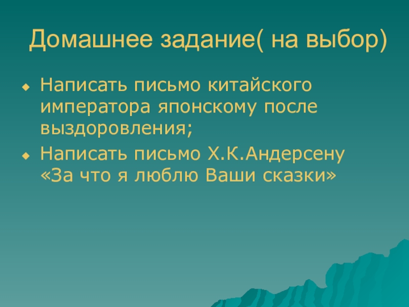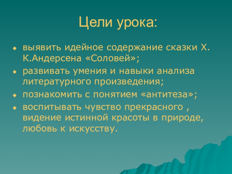 «Принцесса на горошине», «Русалочка», «Соловей», «Гадкий утенок», «Дикие лебеди», «Дюймовочка» и др.