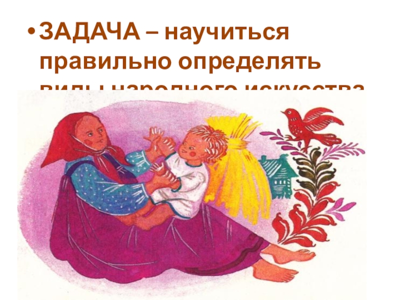 Слайд 4ЗАДАЧА – научиться правильно определять виды народного искусства