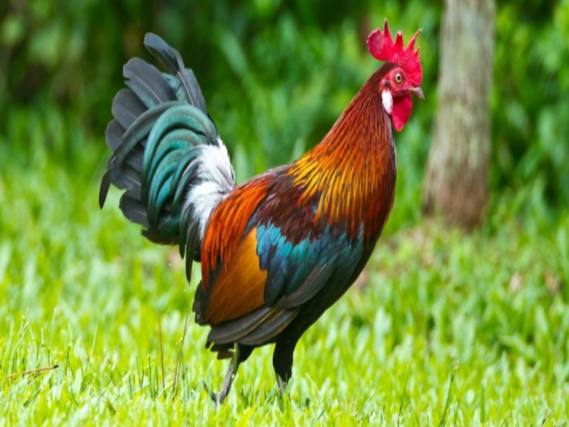 Хвост узорами, сапоги со шпорами, ночью распевает время считает.