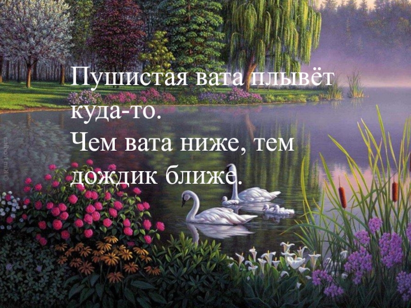 Пушистая вата плывёт куда-то.Чем вата ниже, тем дождик ближе.