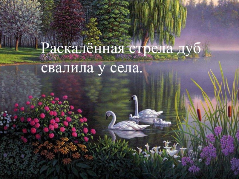 Слайд 24Раскалённая стрела дуб свалила у села.