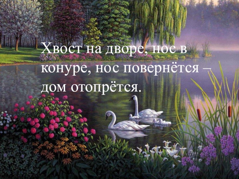 Слайд 30Хвост на дворе, нос в конуре, нос повернётся – дом отопрётся.