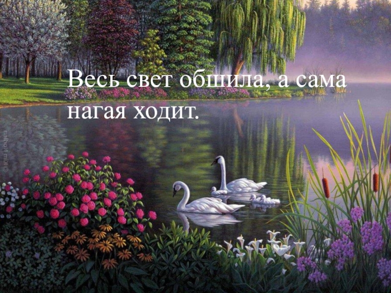 Слайд 28Весь свет обшила, а сама нагая ходит.