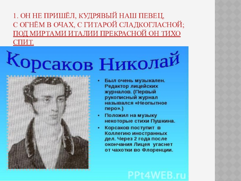Слайд 141. Он не пришёл, кудрявый наш певец,