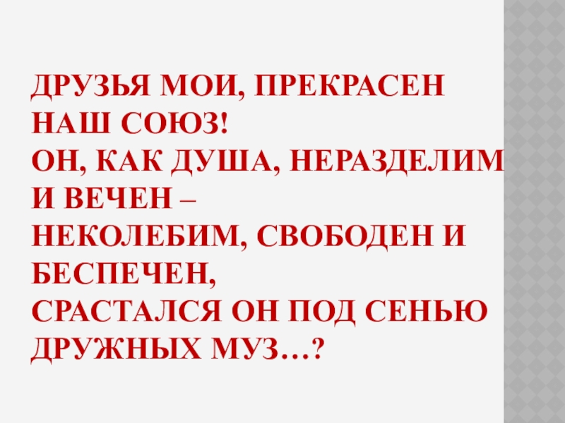 Слайд 152. Друзья мои, прекрасен наш союз!