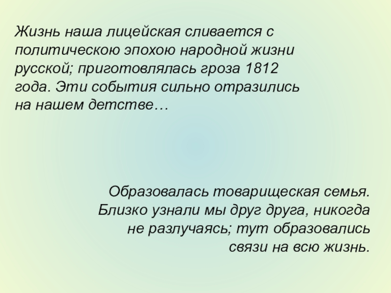Образовалась товарищеская семья. Близко узнали мы друг друга, никогда не разлучаясь; тут образовались связи на всю жизнь.