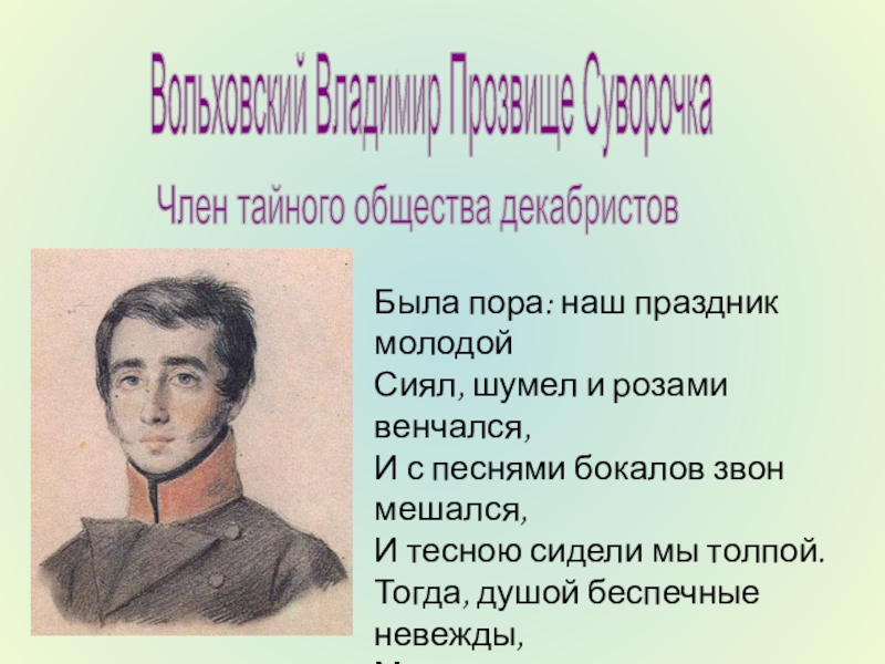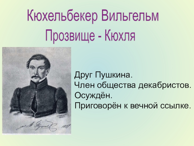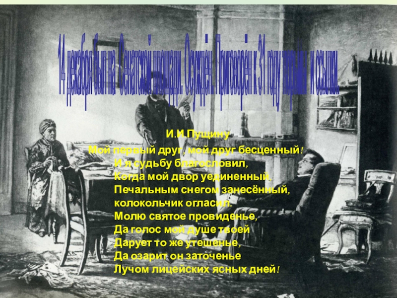 14 декабря был на Сенатской площади. Осуждён. Приговорён к 31 году тюрьмы и ссылки.