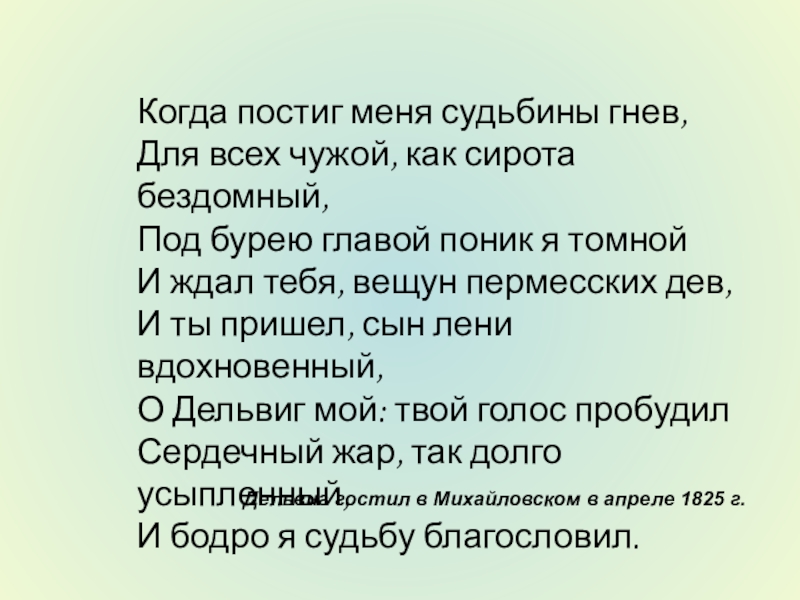 Дельвиг гостил в Михайловском в апреле 1825 г.