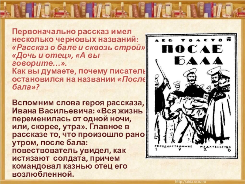 Почему Лев Николаевич Толстой в преклонном возрасте вернулся к воспоминаниям своей молодости, положив их в основу сюжета рассказа «После бала»?