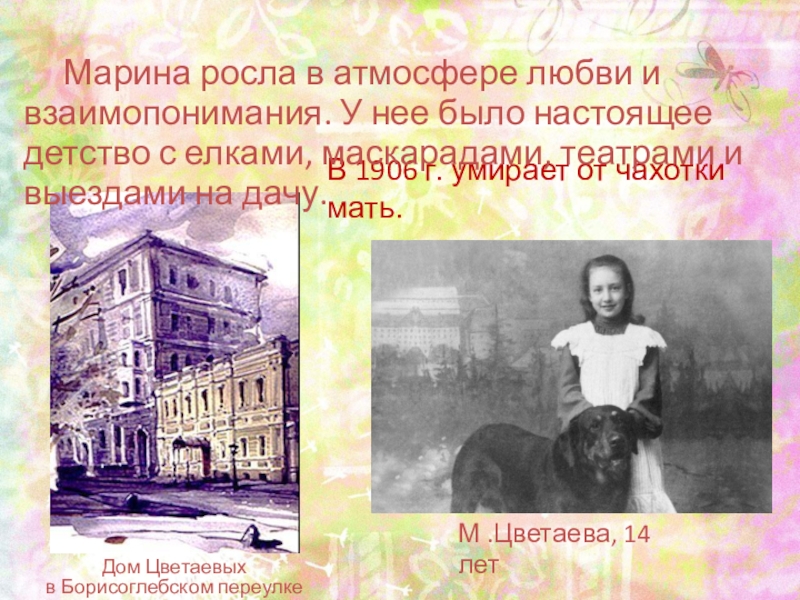 Марина росла в атмосфере любви и взаимопонимания. У нее было настоящее детство с елками, маскарадами, театрами и выездами на дачу.