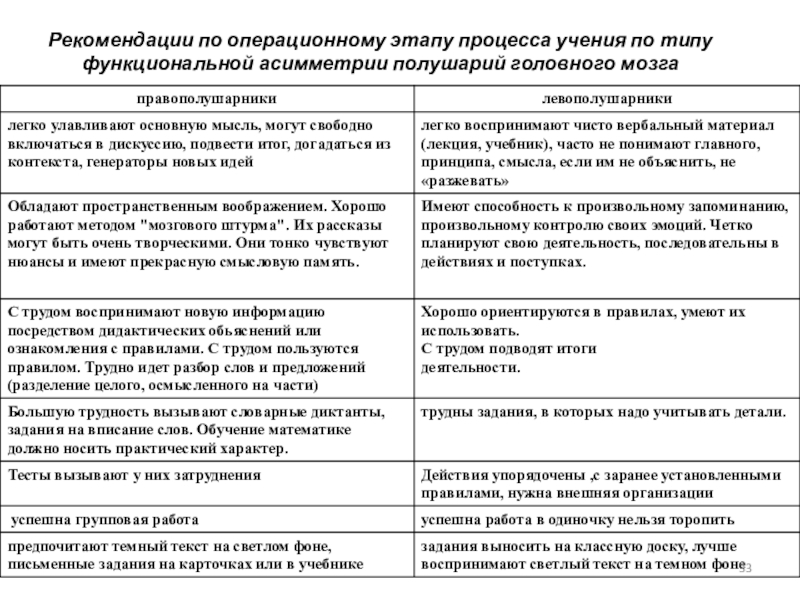 тщательная проработка и детализация информации, работа по алгоритму, пошаговые технологии;