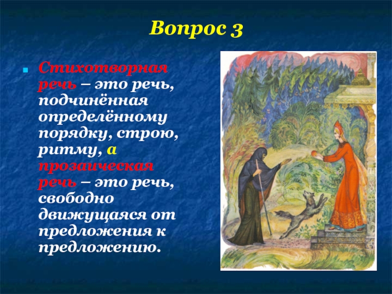 Вопрос 3Стихотворная речь – это речь, подчинённая определённому порядку, строю, ритму, а прозаическая речь – это речь,