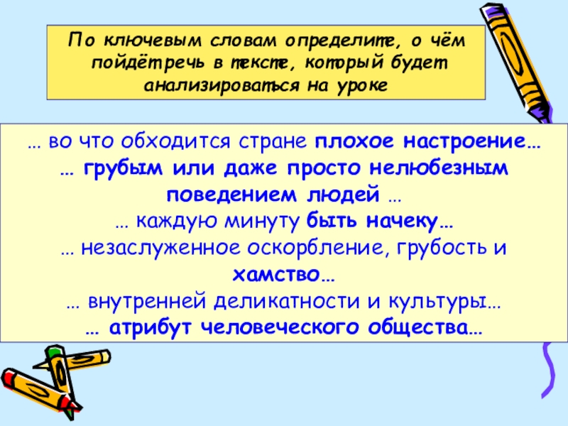 По ключевым словам определите, о чём пойдёт речь в тексте, который будет анализироваться на уроке