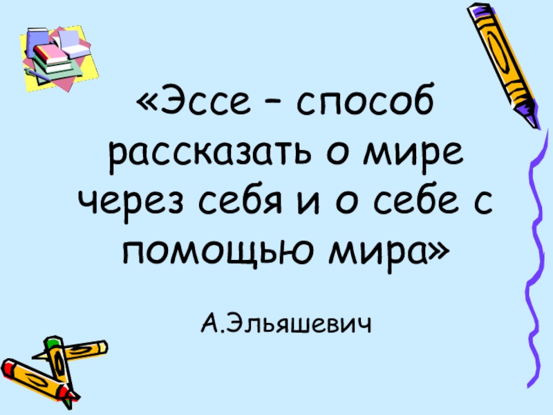 Слайд 27«Эссе – способ рассказать о мире через себя и о себе