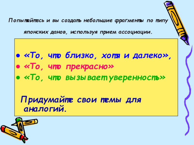Слайд 17Попытайтесь и вы создать небольшие фрагменты по типу японских данов, используя