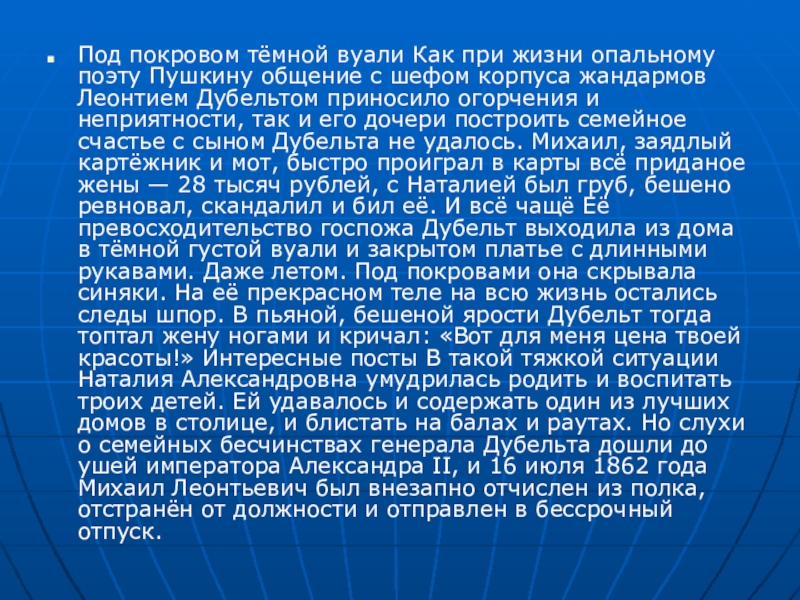 Под покровом тёмной вуали Как при жизни опальному поэту Пушкину общение