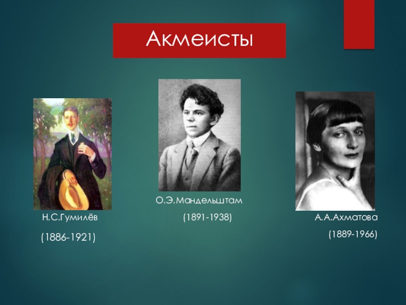 Представители: Н. Гумилев, С. Городецкий, А. Ахматова, О. Мандельштам, В. Нарбут, М. Кузьмин.