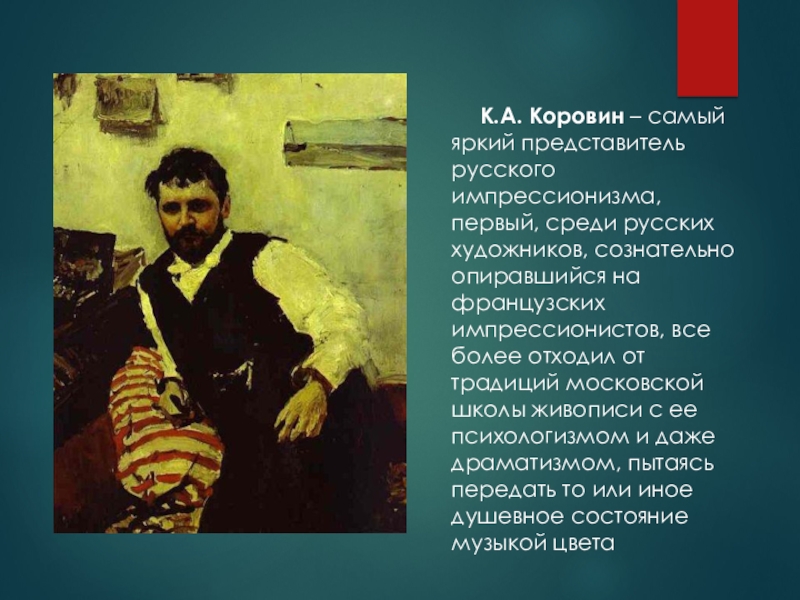 Слайд 6 К.А. Коровин – самый яркий представитель русского импрессионизма, первый, среди русских