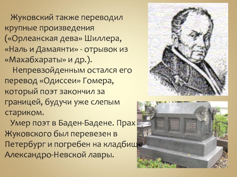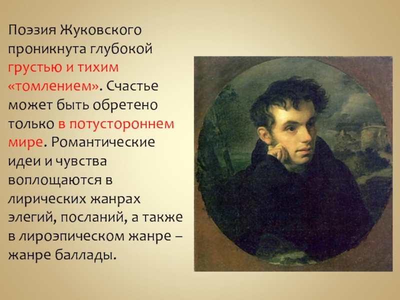 Светлый взгляд поэта на мир и любовь к людям составляют вместе с образностью языка главную прелесть творчеств Жуковского.