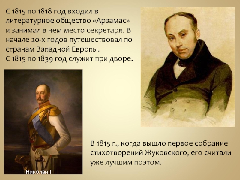 В 1815 г., когда вышло первое собрание стихотворений Жуковского, его считали уже лучшим поэтом.