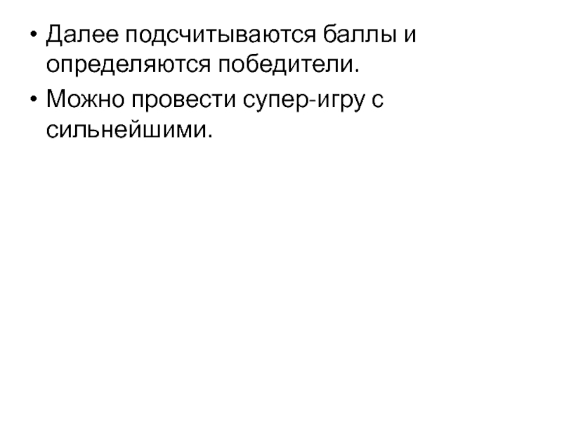 Слайд 13Далее подсчитываются баллы и определяются победители.