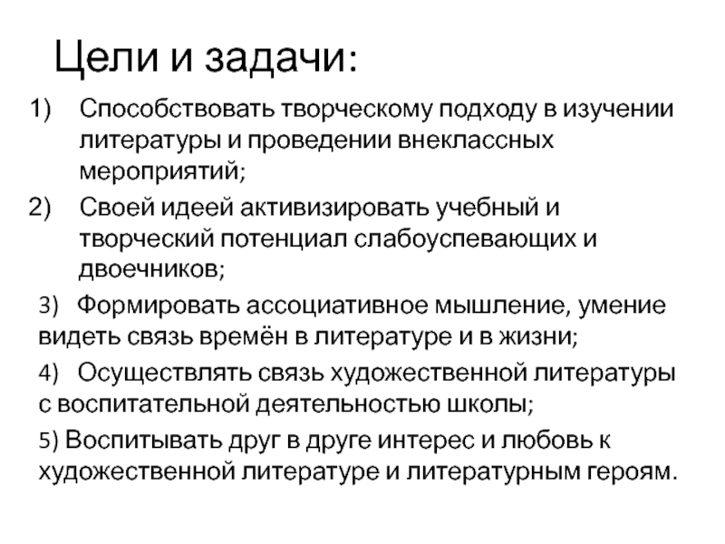 4) Осуществлять связь художественной литературы с воспитательной деятельностью школы;