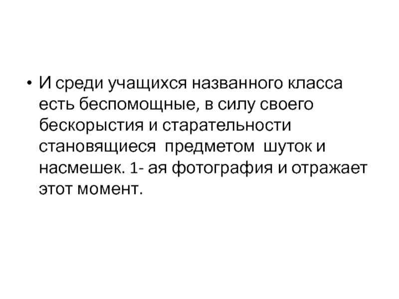 Слайд 20И среди учащихся названного класса есть беспомощные, в силу своего бескорыстия