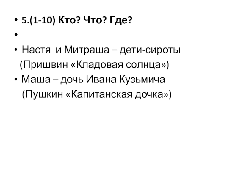 Задание: Кто? Что? Где? Учитель называет героя. Участники отвечают: кто он? Называют автора и произведение.