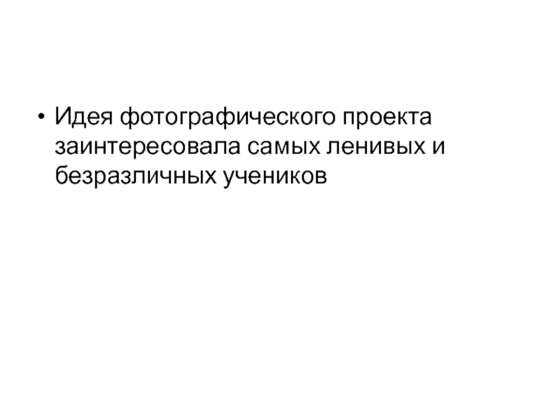Слайд 32Идея фотографического проекта заинтересовала самых ленивых и безразличных учеников
