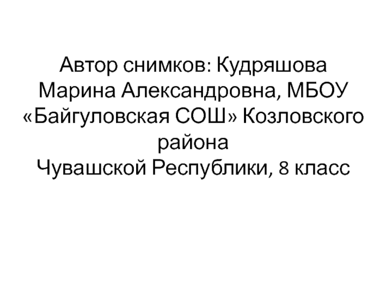 Слайд 15Автор снимков: Кудряшова Марина Александровна, МБОУ «Байгуловская СОШ» Козловского района