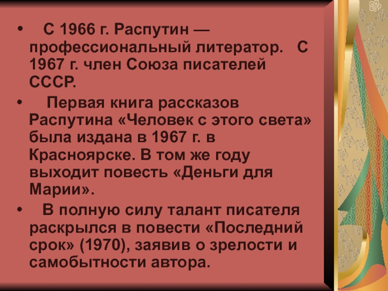 Русский прозаик, представитель «деревенской прозы».