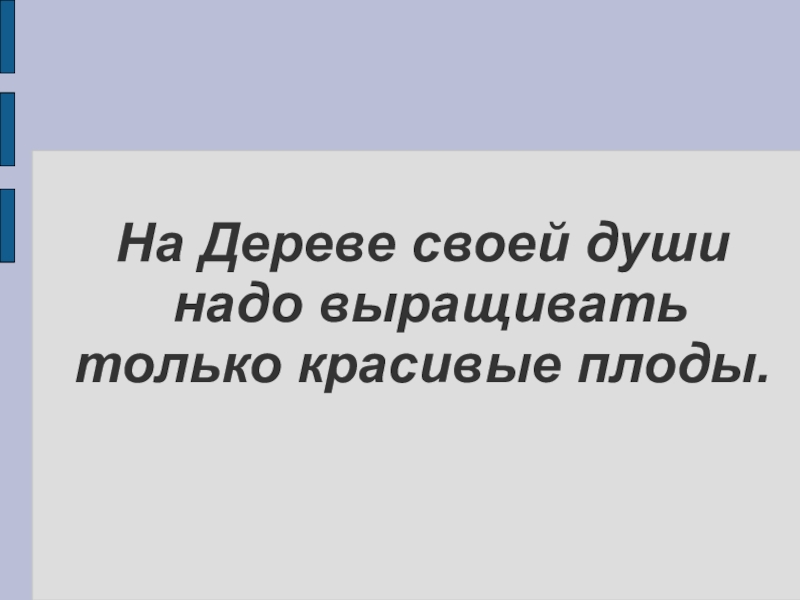 Слайд 8На Дереве своей души надо выращивать только красивые плоды.