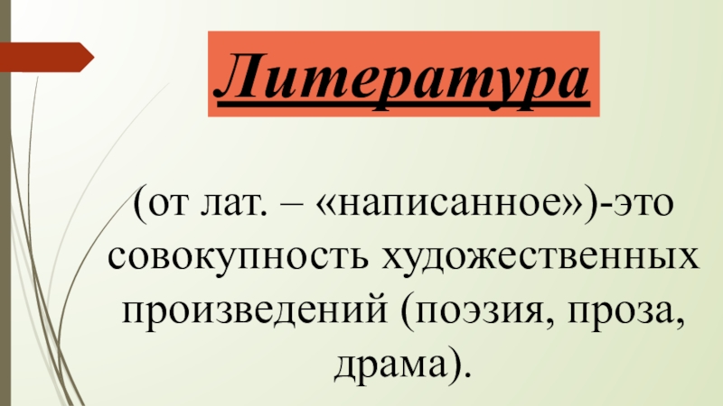 (от лат. – «написанное»)-это совокупность художественных произведений (поэзия, проза, драма).Литература