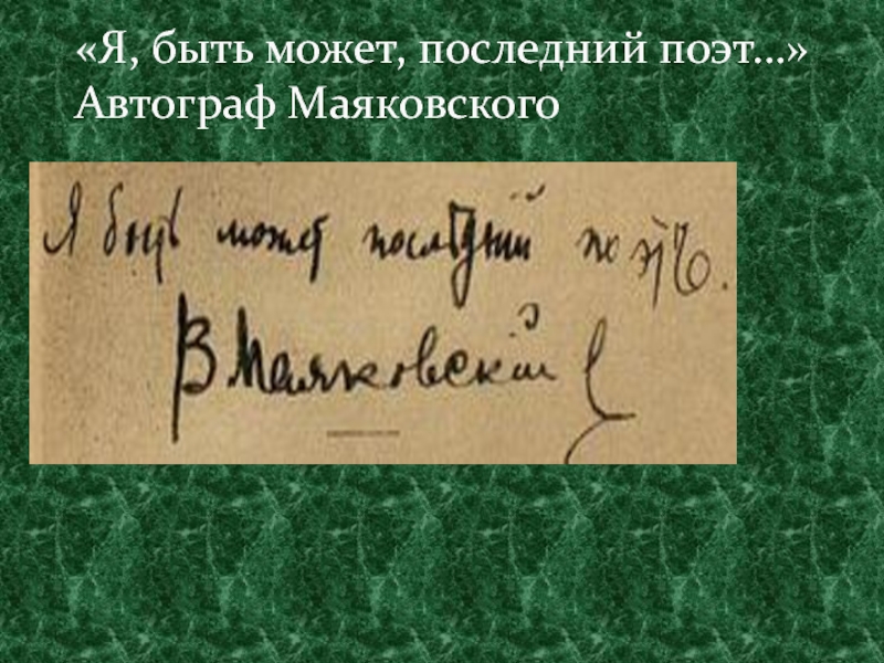 Слайд 17«Я, быть может, последний поэт…» Автограф Маяковского